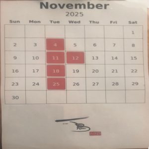 2025年11月の店休日
